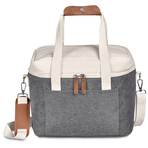 The combination of materials of this cooler bag makes it both blend in and stand out in a natural, outdoor setting.