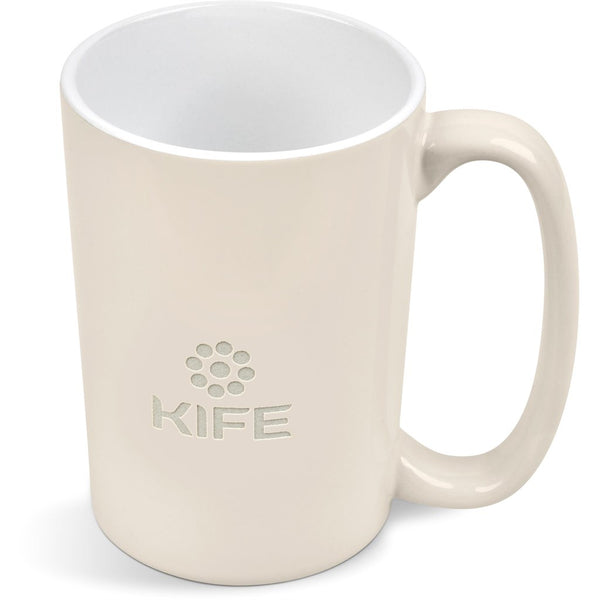 This generously-sized ceramic mug has a large handle, which makes it comfortable to hold. The mug can be laser-engraved, which provides a more subtle and long lasting branding opportunity for your logo or message.
