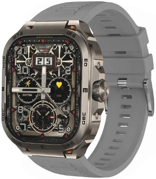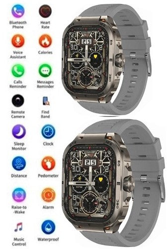Nesty NP 104 Ultra Smart Sports Watch With Calling Function – Square Shape Full Touch 2.01 Inch TFT Colour Screen, Resolution 240 x 296, IP67 Water Resistant, Usage Fitness And Outdoor Smart Watch, Metal Body with Tempered Glass Construction, Multiple Sports Health Activity Modes, Heart Rate Monitoring Sensor, Blood Oxygen, Calories Counter, Alarm Clock, Calendar, Calculator, Multiple International Times Zones, Make Voice Calls and Receive Messages, Built-In Microphone And Speaker, Bluetooth V 5.3, Rechargeable Lithium 300mAh Battery Capacity, Includes Wireless Charging Dock, Colour Grey and Gold, Retail Box, 6 Months Warranty.