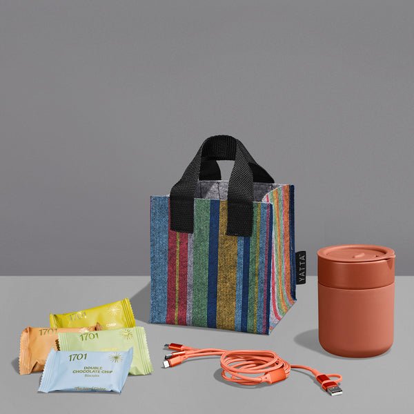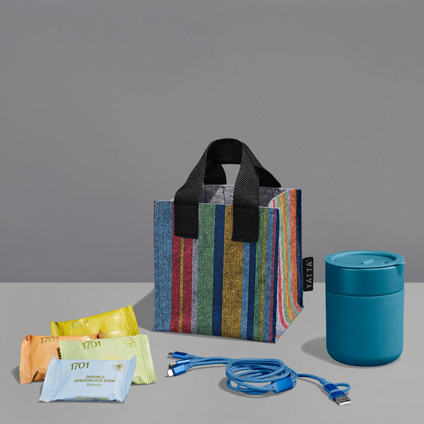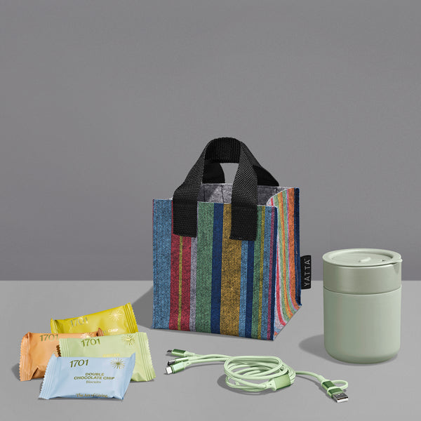 The Yatta range of hampers is expertly crafted to provide a delightful experience with a curated selection of premium items and edible treats. The contents are elegantly presented in a Yatta sublimated RPET felt mini gift bag.