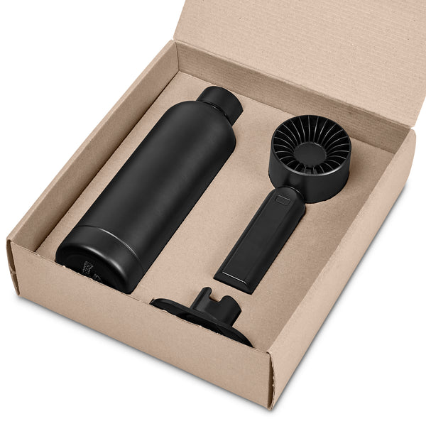 This refreshing gift set combines a handheld mini fan with a matching 800ml stainless steel water bottle. The fan has a built-in rechargeable 1200mAh battery, ensuring hours of cordless use, while the lightweight design makes it easy to hold and carry.