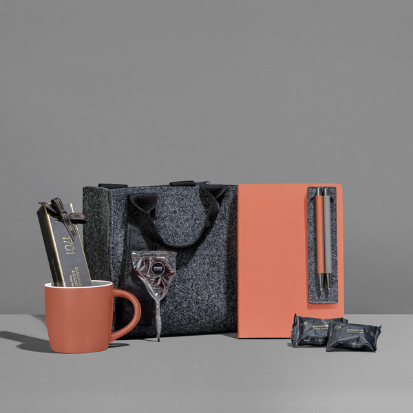 Features a collection of luxe essentials in on-trend fashion colors. From gourmet treats to a stylish mug, notebook, and pen, this set delivers the perfect balance of sophistication and practicality. Whether it is for fashion enthusiast, or someone who appreciates the finer things, this hamper makes a statement of effortless chic.