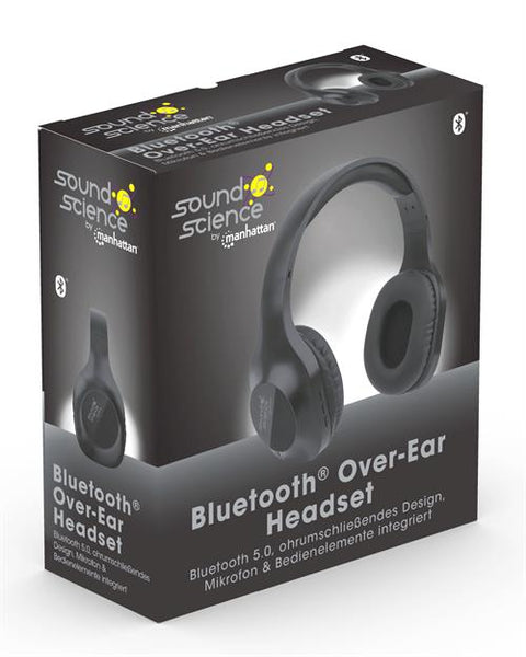 Manhattan Sound Science Bluetooth Over-Ear Headset - Bluetooth 5.0 + EDR, Over-Ear Design, Omnidirectional Mic, Integrated Controls, Black, Retail Box , 1 year Limited Warranty