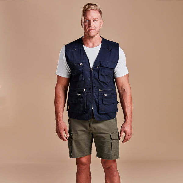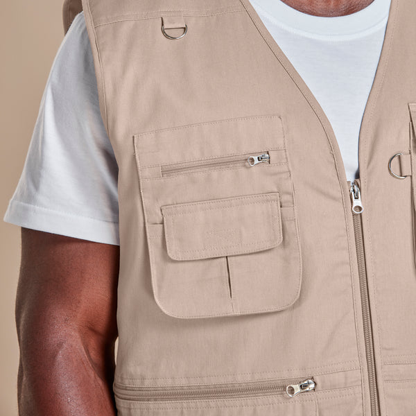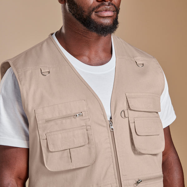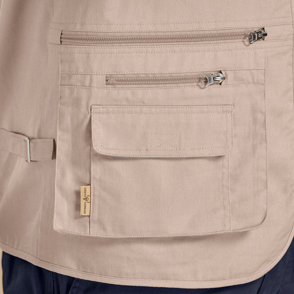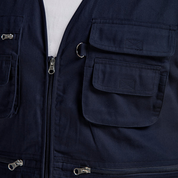 100% cottonfull zip with metal zip pullermulti-functional pocketsmetal D ringsadjustable waist strap Material: 100% Cotton