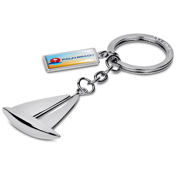 The Serendipio Charmed Collection is a range of quality nickel-plated metal keyholders, each designed with a unique theme that ties into different industries and lifestyles. Every keyholder includes a tag that can be branded with a custom dome sticker - ensuring your logo stands out with a professional, high-quality finish. This keyholder could be a suitable promotional gift for these industries: travel agencies, tour operators, seaside resorts, hotels, and outdoor and adventure brands.