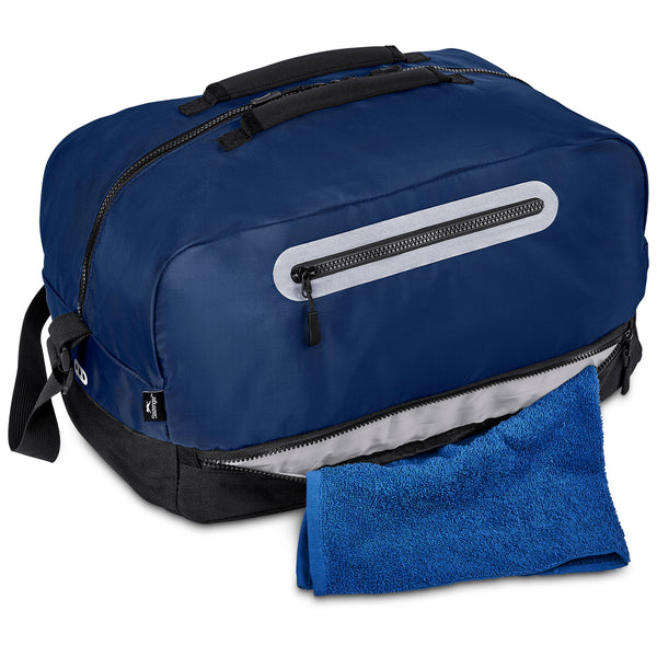 This water-resistant sports bag from Slazenger is stylish, durable, and functional, with its waterproof pocket for wet items. The nylon water-resistant fabric offers exceptional strength and protection against the elements. The semi-double-decker design ensures optimal organisation. For enhanced visibility, the bag features reflective tape around the pockets, making it suitable for use in low-light conditions.